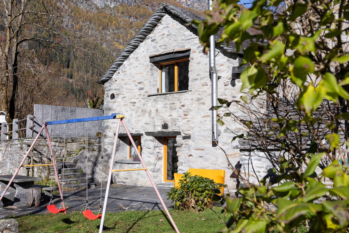 Təbiət qoynunda yerləşən İsveçrə Alp dağlarının Cənub hissəsində sülh vahəsi. Vaxt və özünü tapmaq üçün yer. Hər şeydən bir daş atın. Bütün interyer taxtadadır, odun sobası, yeni mətbəx, içəridə böyük masa və həyətdə çöldə daha böyük soba var. Hamınız özünüz olacaqsınız. 4 otaq, 3 Birnəfərlik çarpayı + 3 ikinəfərlik çarpayı.