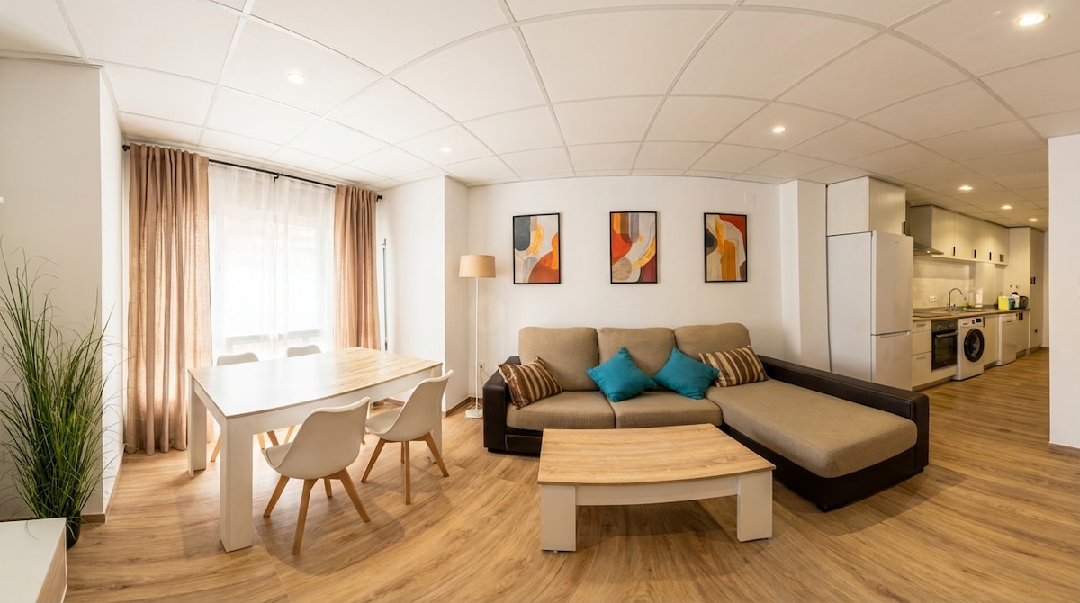 2025-ci ildə təmir edilmiş, Qandiyanın tarixi mərkəzində yerləşən zərif mənzil. Serpis çayına baxan açıq mənzərəli terras. Ufüqdə dəniz xətti görünür. Şəhəri araşdırdıqdan sonra dincəlmək üçün mükəmməl olan rahat, işıqlı və yaxşı təchiz olunmuş məkan. Passeig Germanies, Hersoq Sarayı və Plaza del Pradodan bir neçə addımlıq məsafədə, bütün xidmətlər yaxınlıqda. Qatar stansiyası 8 dəqiqəlik məsafədə, Qandiya və ya Daimus kimi çimərliklər isə cəmi bir neçə dəqiqəlik sürücülük məsafəsindədir. 200 metrdən az məsafədə pulsuz şəxsi parkinq.