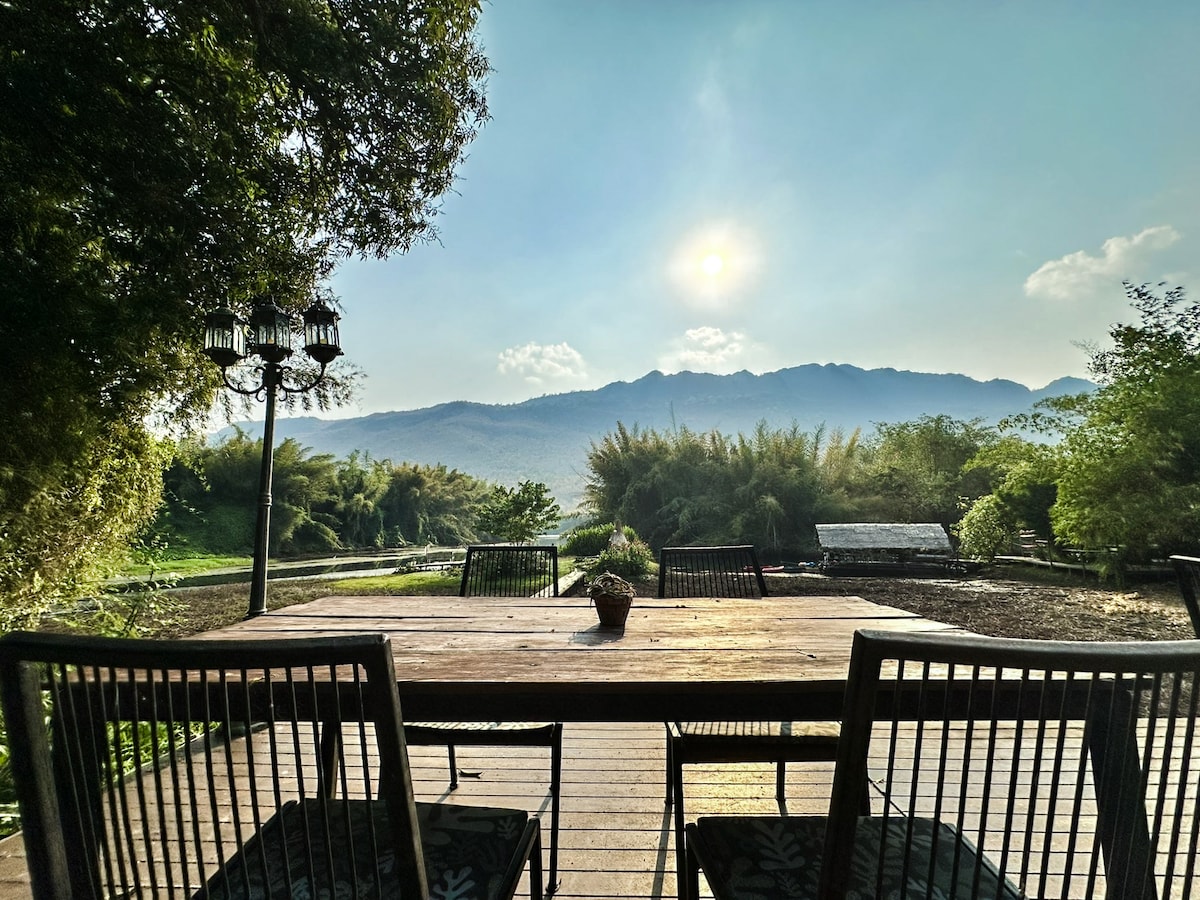 A Large Villa with River View, offering specious living areas and full amenities. Perfect for families and groups (Up to 10 guests) Breakfast included. Conveniently accessible via Highway M81.
