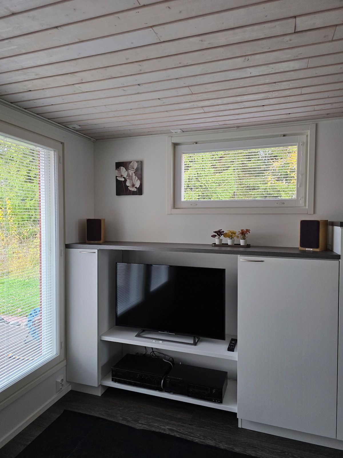 Şəhərin səs-küyündən təbiətin rahatlığına qədər bir az fasilə axtarırsınızsa, bu, sizin üçündür. Varkausdakı Kangaslammdan (kottec cənub tərəfdə yerləşir) ucuz təvazökar, elektrikləşdirilmiş, ibtidai yay kottecini (təqribən 65 kvadrat metr) icarəyə götürün. Kottecdəki hər şey çayın üstündə və buzda deyil, ehtiyacınız olan hər şeyin olduğu əsas kabinədir. Kottecdə soyuducu, dondurucu, mikrodalğalı soba, qəhvə maşını, çaydan, toster, soba, qaz manqal var. Əsas qablar dəsti, televizor, radio, tüstü detektorları.