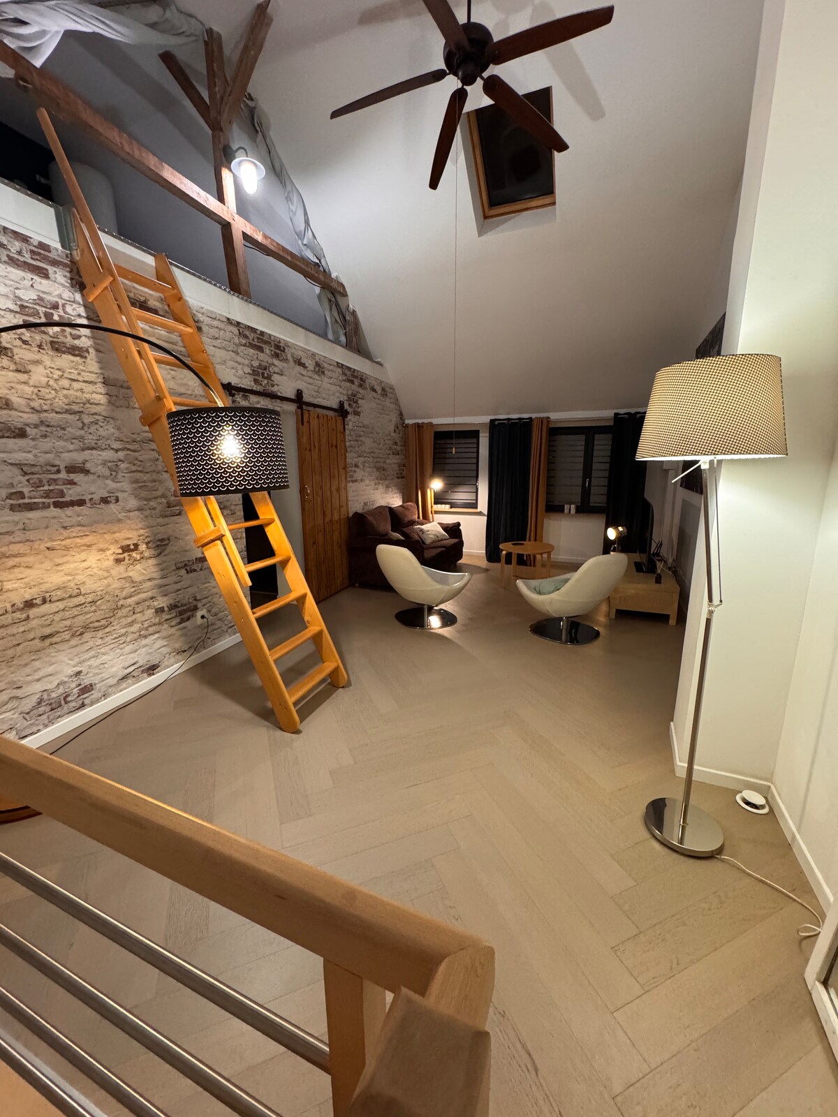 Müstəqil girişi olan müasir evin yuxarısında yerləşən mənzil. Dizayn və nəfis üslubda bəzədilib. Bir yataq otağından ibarətdir: ikinəfərlik çarpayı 180X200, bir hamam otağı, divan çarpayısı olan bir qonaq otağı mətbəxi. 50 kvadratmetrlik mənzilin öz 8m2 balkonu var. Bu, fitnes zonasına və cakuzi və saunadan ibarət sağlamlıq zonasına ayrıca giriş imkanı verir. Qonaqlama yeri Lill şəhər mərkəzindən 10 km-dən az məsafədə yerləşir.