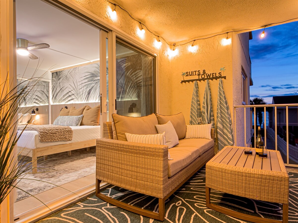Follow the sun to this beautifully renovated oceanfront studio—where white sand, warm breezes, and crystal blue waters await. • Free beach chairs and umbrella included with your stay (March 15 – October 31). • Relax on your private balcony overlooking one of the most breathtaking beaches in the world. • Centrally located – park your car and forget about it! Walk to top-rated restaurants, Pier Park, and many local favorites.