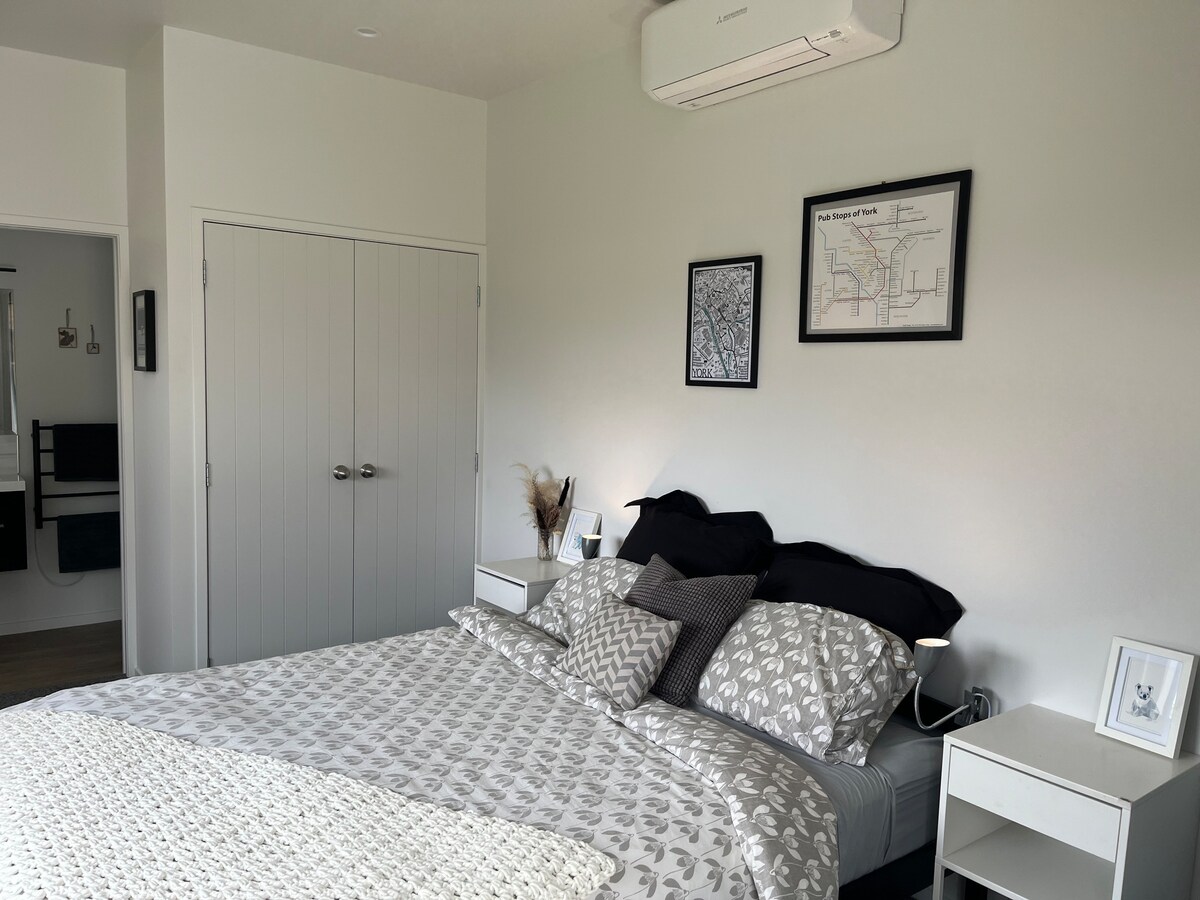 Enjoy a taste of Yorkshire in the heart of St Andrew’s: a stylish, self contained unit, at the back of our property. Complete with basic tea and toast facilities, a small fridge, heat pump, wifi, ensuite and plenty of on-street parking, this one room gem is the perfect home away from home. Located 200m from the Braid Road shops, boasting a cafe and options of takeaway, Little York is within a stone’s throw of both the St Andrew’s Golf course and the beautiful river walk into central Hamilton.