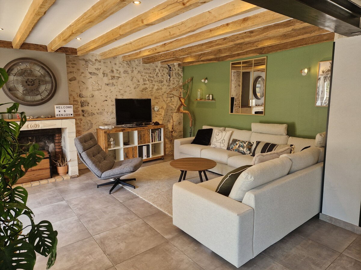 Gite "Charmant Buissonnet" Bir səviyyədə orijinal və dəbli 3 ulduzlu füsunkar kottecimizə xoş gəlmisiniz Ferma evimizdə müstəqil 55 m² qonaqlama, təmir edilmiş ənənəvi tikinti Sakit, qapalı ayrıca bağçası olan. İmkanlara 5 dəq. məsafədə. Qarşısında heç bir qonşu, qalın olmayan divarları olan, yaxşı təchiz olunmuş və xoş dekorasiyası olan kottec yoxdur... Bu, yaxşı hissdir! A85 = 5 dəq A10 = 15 dəq Turlar Mərkəzi = 20 dəq Beş "Grand châteaux" < 30 min Xüsusi EV şarj stansiyası 7.4 kVt
