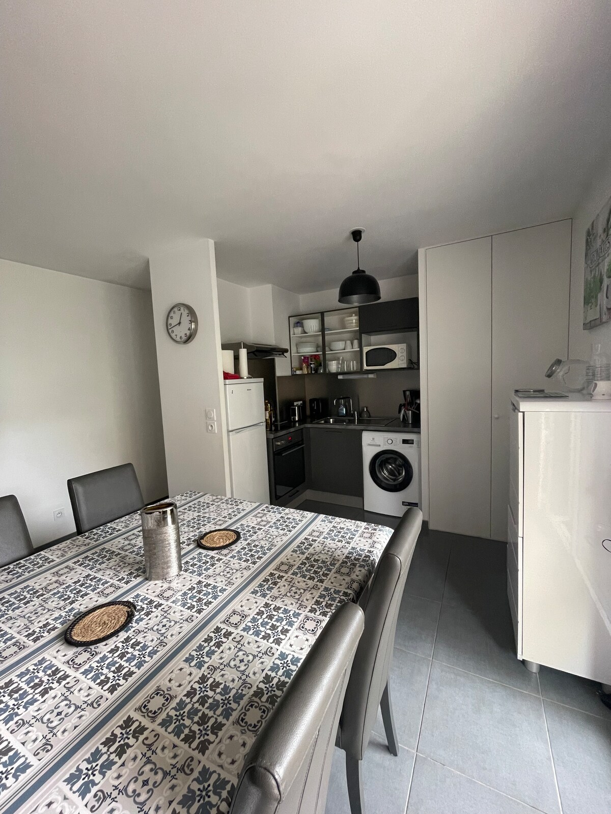Dənizkənarı şəhərin mərkəzində, liftli 5-ci mərtəbədə yerləşən bu geniş studiya sizi yaşıl parkda, klaviaturası olan sakit bir iqamətgahda qarşılayır. 50 metr məsafədə çarpıcı dəniz mənzərəsi. İstirahət, müxtəlif fəaliyyətlərdən zövq almaq, kino, Talasso, su idman növləri, qolf üçün idealdır. Yaşayış yerinin yanında pulsuz parkinq var. Wi-Fi. Qeyri-məcburi çarpayı və hamam dəsti € 10/adambaşına. Qeyri-məcburi təmizlik € 20 (4 gecədən 40 € vergi tutulur). İyul və avqust aylarında şənbə günündən şənbə gününə qədər.