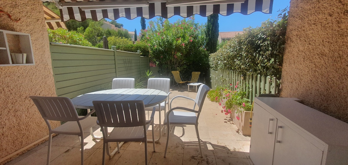 Bonjour, Nous vous proposons de passer votre séjour dans une maison classée 3* entièrement rénovée en 2020 de 42m2 et de sa terrasse ensoleillée de 20m2, avec: - climatisation - lit 160 avec matelas neuf - canapé lit dans le salon - lave linge et lave vaisselle - table et chaises de jardin, transat, stores banne - place de parking dans la propriété - et plein d'autres choses: lisez Bienvenue chez nous, nous mettrons tout en œuvre pour que vous passiez un agréable séjour!
