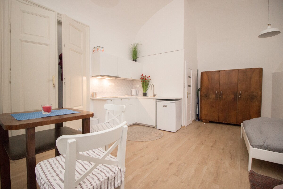 1 gecəlik və ya daha uzun müddət, turistlər, səyahətçilər, iş adamları üçün, romantika, istirahət və ya mədəniyyətə ehtiyacınız varsa, sizə Koşitsanın mərkəzində, Müqəddəs Yelizaveta Kilsəsindən 1 dəqiqəlik məsafədə, şəhər evində yeni, rahat, səliqəli bir STUDİO təklif edirəm. TV, pulsuz WIFI, əsas avadanlıqlarla təchiz olunmuş mini mətbəx, plitə, soyuducu, paltaryuyan maşın, çaydan, duş, qarderob. Razılaşma ilə pulsuz parkinq.
