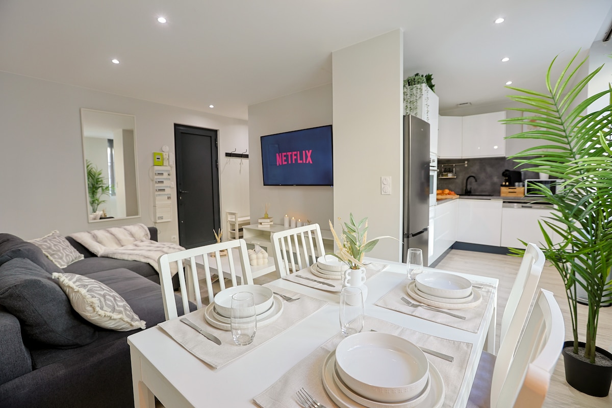 Cennetin evinə xoş gəlmisiniz! Sent-Etyenin mərkəzində 2-ci mərtəbədə yerləşən 3 yataq otaqlı dəbdəbəli mənzil. Geniş, işıqlı və diqqətlə təchiz edilmiş bu məkan zərif və yüksək səviyyəli mühit təklif edir. Sürətli Wi-Fi, keyfiyyətli yataq dəsti və müstəsna qonaqlama üçün lazım olan bütün rahatlıqlar sizi gözləyir. Şəhər mərkəzində nadir imtiyaz olan pulsuz parkinq daxildir. Yaxınlıqda mağazalar, restoranlar və nəqliyyat.