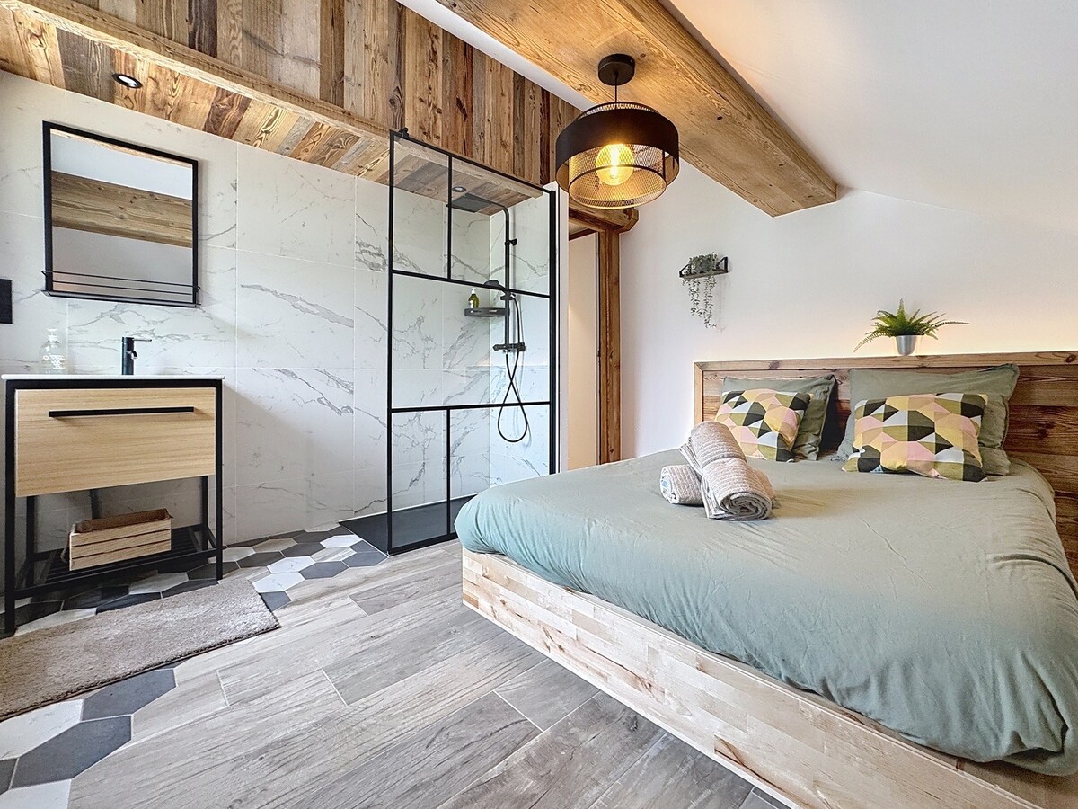 Logement spacieux décoré avec soin avec une grande pièce à vivre et une cuisine tout équipée.. la chambre est une suite avec douche et un grand lit (160x200) . Il y a un jardin avec une petite terrasse privative ainsi qu’un parking privé.. Le chalet est proche des restaurants, des activités adaptées (pistes de ski et alpin, chemin de randonnée et VTT).. parfait pour les couples, les voyageurs en solo, les voyageurs d'affaires.. MAIS UNIQUEMENT 2 PERSONNES (pas de bébé 👶)