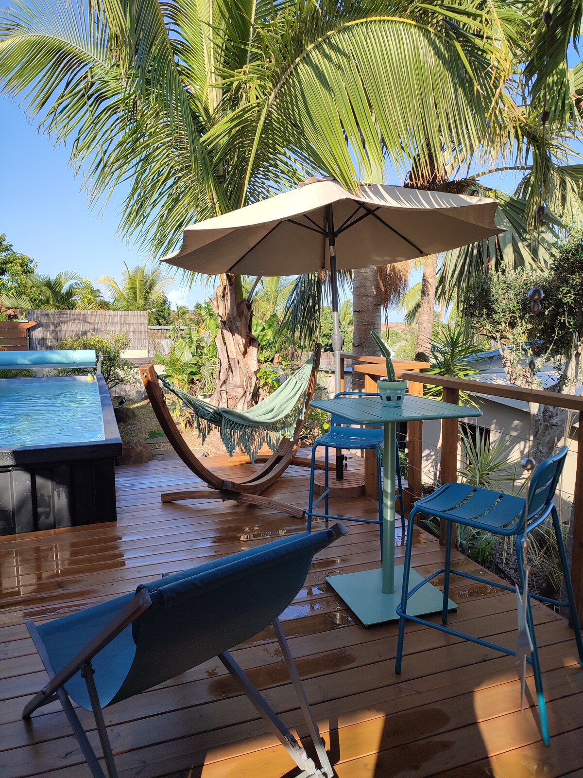 La villa CocoLagon s'est transformée pour vous offrir 2 lodges indépendants. Choisissez la KAZ PITAYA pour faire une pause détente dans l'Ouest. Vous pourrez vous rafraichir dans votre piscine privative (chauffée au solaire en hiver), cuisiner sous votre varangue... Et ce, à 5' à pied ,des plages du lagon, des commerces et des restaurants de la Saline les Bains