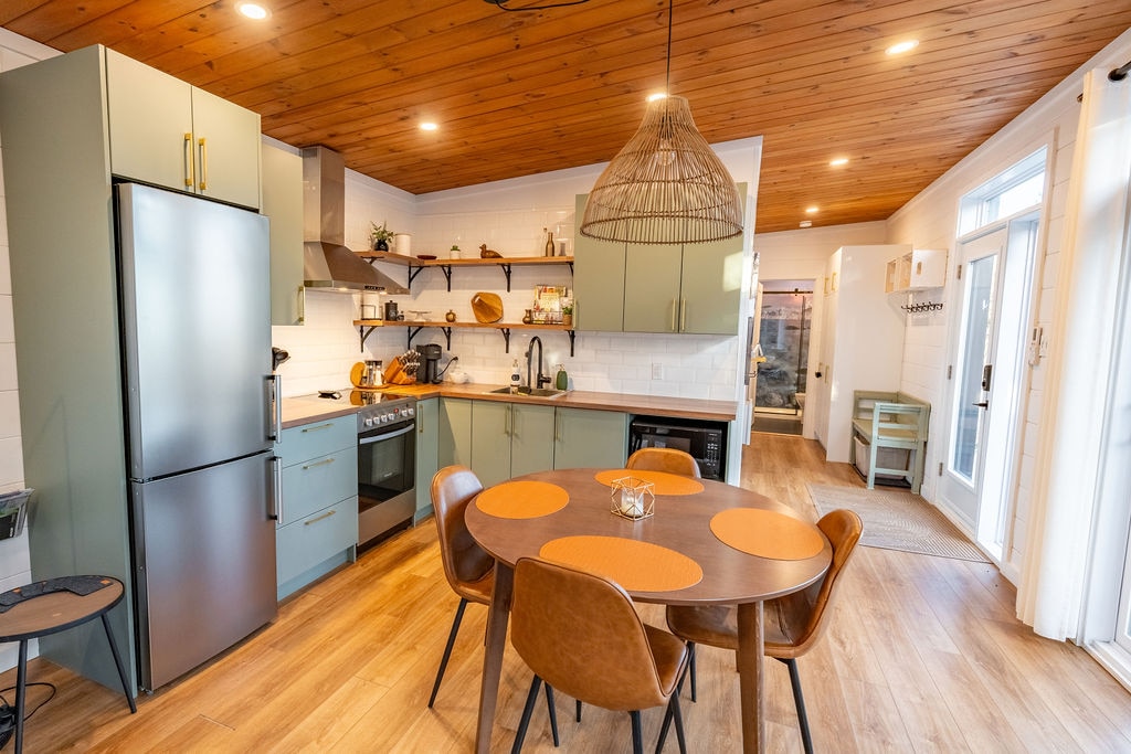 CITQ 227835 Gözəl kottec 4 mövsüm, meşəlik ərazidə, çay kənarında Kvebekin 30 dəq. məsafədə yerləşir. Körpülərdən 2 dəq. məsafədə. Böyük yataq otağı kraliça çarpayısı + qonaq otağında divan çarpayısı da var. 4 adu + uşağı yerləşdirə bilər. Hamısı daxildir, Wi-Fi. Ev heyvanlarına icazə verilir. Gözəl kottec, Riverside. Kvebek şəhərinin cənub sahili körpülərdən 30 dəq. Xidmətlərdən 2 dəq. Böyük yataq otağı kraliça çarpayısı + divan çarpayısı, eləcə də qonaq otağında divan çarpayısı. 4 böyük və uşaq yerləşdirə bilər. Ev heyvanları qəbul edə bilər