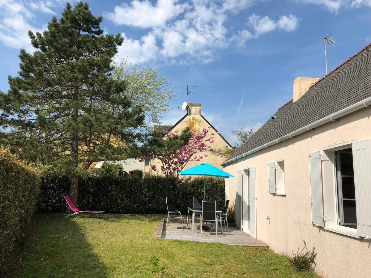 Çimərlikdən 500 metr məsafədə sakit bir ərazidə, təmirli ev və işıqlı səliqəli dekorasiya, 700 m² xüsusi bağ Təchiz olunmuş mətbəx: soba, qabyuyan maşın, aralıq başlıq, soyuducu/ dondurucu , çaydan, toster, mikrodalğalı soba nespresso maşını. Künc divan düz ekranlı televizor, masa 6 stul, körpə stulu olan yaşayış sahəsi Birinci mərtəbədəki çarpayıda 160 və 140 üstəgəl beşikdə 2 yataq otağı və Ayrıca duş tualeti olan vanna otağı