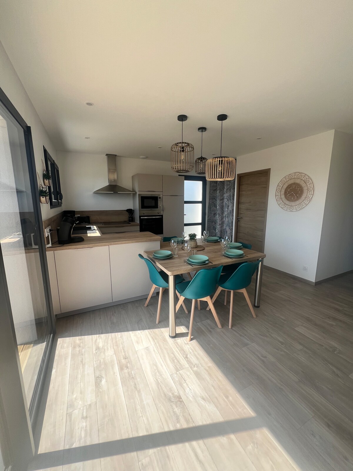 Çimərlikdən cəmi 2 dəqiqəlik piyada məsafədə yerləşən, 135 m² sahəyə malik zərif və işıqlim ev La Petite Gardenia***-ya xoş gəlmişsiniz. Ailə qonaqlamaları və ya dostlarla səfərlər üçün idealdır (maksimum 6 qonaq + körpə), rahatlıq, geniş interyer və zövqlü dekor təklif edir. Abadlaşdırılmış bağ, cənuba baxan terras və üst mərtəbədə dəniz mənzərəsi olan terras bu rahat mühiti tamamlayır. Wi-Fi və döşəkağı-dəsmal dəstləri daxildir.