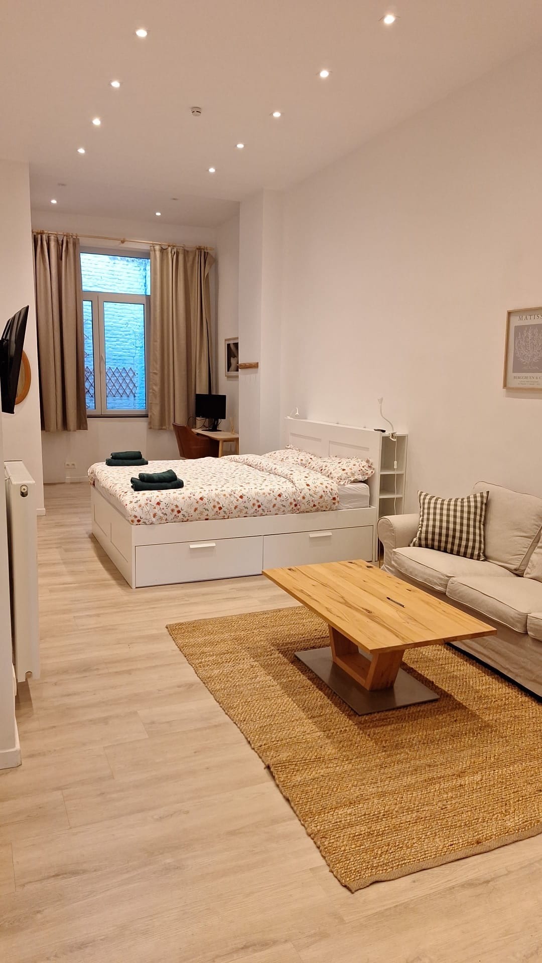 Rahat olun və bu geniş studiyadan zövq alın. Məkan rahat çarpayı və geniş hamam otağı olan cütlük üçün idealdır. Arts Loi metrosuna və Madou stansiyasına yaxındır. Ambiorix Meydanı, Kral Parkı və Avropa Komissiyasına yaxın. Studiya təmir edilmiş 1800-cü illər evimizin alt mərtəbəsindədir. Alt mərtəbə "Tərəzi" kimi istifadə olunurdu, lakin indi studiyaya çevrilib. Nəzərə alın ki, qəhvə maşını, çaydan və kiçik soyuducu təmin edirik, lakin studiyada yemək bişirmək üçün faktiki mətbəx yoxdur.