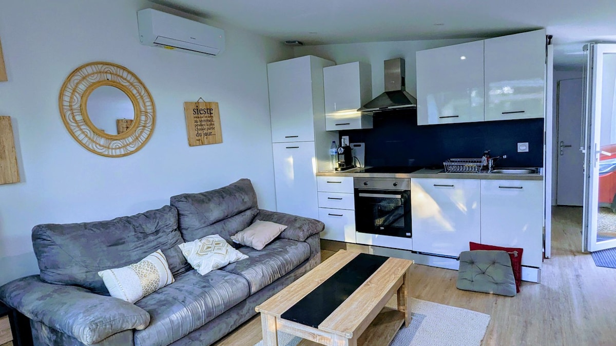 Aigues Mortes-dən beş dəqiqəlik məsafədə yerləşən Nimes və Monpelye arasında sizə 35 m2 sahəsi olan, iki səviyyədə füsunkar kənd evi təklif edirik. St Laurent d 'Aigouze şəhərinin mərkəzində yerləşən evimiz birinci mərtəbədə təchiz olunmuş mətbəxi olan qonaq otağı, yuxarı mərtəbədə isə yataq otağı və hamam otağından ibarətdir. Təbiəti, orijinallığı və ənənələri sevirsinizsə, Petite Camargue sizin üçündür!