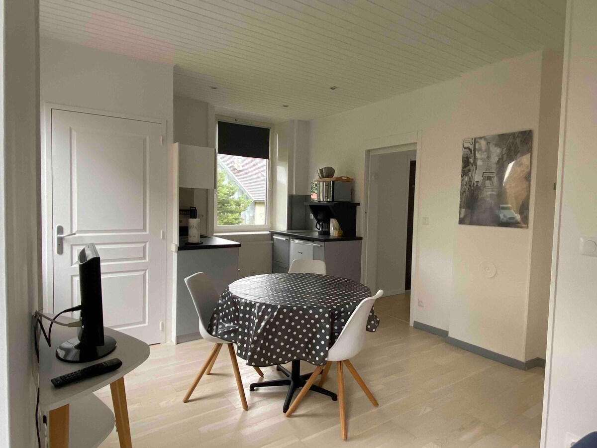 Ce petit appartement cosy est proche de toutes commodités (supermarché, boulangerie, fromagerie, …) et de tous les sites touristiques du Haut Jura. Très agréable en été comme en hiver. Proche des lacs, pistes de ski, randos... Le calme à deux pas du centre-ville et de la gare (Ligne des hirondelles). Idéal pour un couple avec 1 bébé.