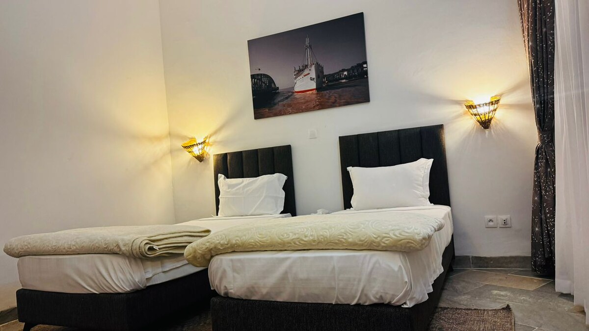Vous adorerez cette chambre dans un petit hôtel charmant à 100m de l'océan atlantique et 30m du fleuve sénégal sur la langue de barbarie. le décor élégant de cet hébergement de charme vous offrira un bien-être indescriptible. Vous pourrez aisément profiter d'une piscine, de la mer et même du fleuve selon vos envies. Nous vous offrons un petit déjeuner frais en buffet tous les matins. Venez découvrir ce petit coin de paradis!