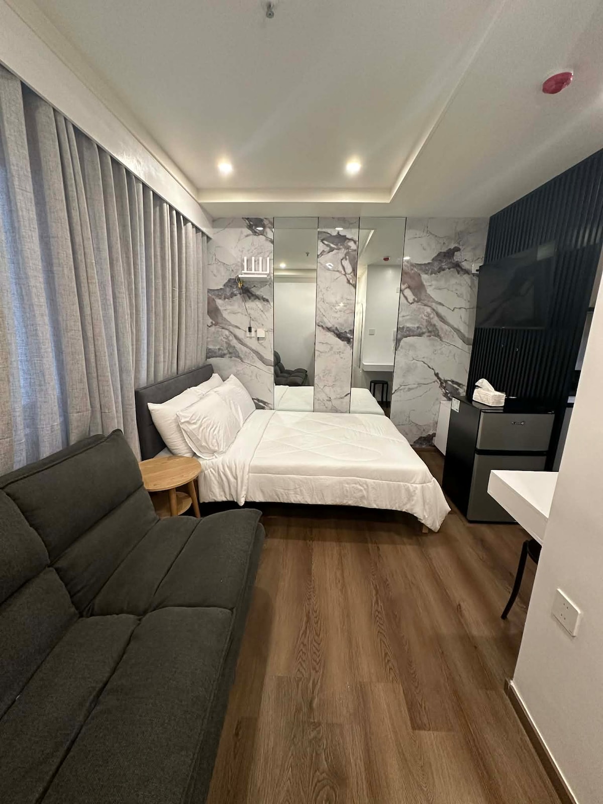 Şəhər mərkəzində yerləşən Megatower Residences-də yerləşən 27sq metrlik Studiyadır. Rahatlığına görə onu sevəcəksiniz. Pəncərənin yanındakı Mənzərə də rahatdır. Cütlüklər və tək macərapərəstlər üçün idealdır wi-Fi sürəti @ 10 mbps ÖZ-ÖZÜNƏ Giriş vaxtı gecə saat 2-dir / Çıxış vaxtı saat 12-dir. QEYDİYYAT / I.D. tələb olunur Uyğunlaşan Giriş və Çıxış vaxtı təşkil edilə bilər (ev qaydalarına baxın) Mənzilimiz qonaqdan çıxış zamanı təyin edilmiş Zibil qabına düzgün şəkildə atmağı tələb edir