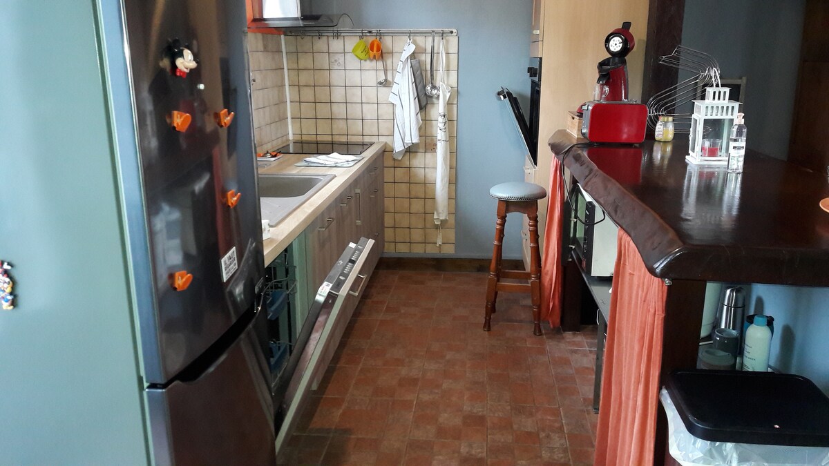 Müstəqil evimizin birinci mərtəbəsində, xarici pilləkənlə müstəqil girişi olan, 3 ulduzlu 28 m²-lik studio. Tam təchiz olunmuş mətbəx: induksiya şkafları, soba/mikrodalğalı soba kombinasiyası, böyük soyuducu, qabyuyan maşın, qəhvə maşını və Dolce-Gusto qəhvə maşını. Duşu olan tualet sahəsi. Tualeti ayırın. Şkaf və saxlama Masa, stullar və günəş vannası ilə bağdan zövq ala bilərsiniz. İdeal mövqedə yerləşir, şəhər mərkəzindən 5 dəqiqə və qatar stansiyasından 5 dəqiqə məsafədədir.