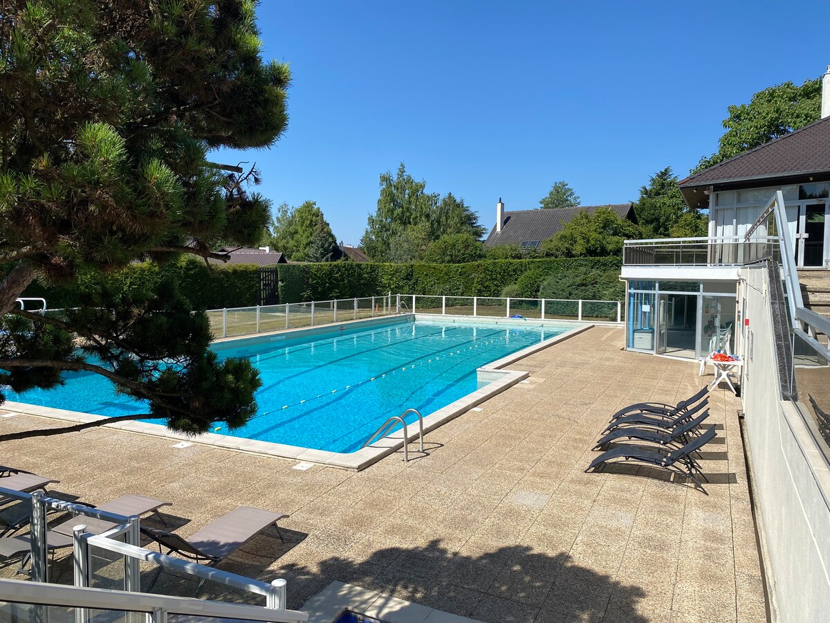 Mənzərəli bağı, böyük ayrıca hovuzu olan füsunkar əmlak olan Le Chatio-ya xoş gəlmisiniz! Parisdən 18 dəq, Versal çâteau/bağlarından avtomobillə 7 dəq. Parisə gedən qatar stansiyası 7 dəqiqəlik məsafədədir, pulsuz parkinq var. Sabit Wi-Fi. 50 kvadratmetrlik geniş, rahat, müstəqil studiya. Keyfiyyətli yataq dəsti. TV istirahət zonası. Mətbəx sahəsi ilə təchiz olunub. Gəzinti üçün duşu və tualetləri olan ayrıca duş otağı. Hovuz mövsümdə isidilir və səhər 9-dan axşam 7-yə qədər açıqdır. Sahibləri ilə paylaşmaq üçün hovuz. Qolf meydançası + Marli meşəsi 50 m. Qapalı sığınacaq parkinq yeri.