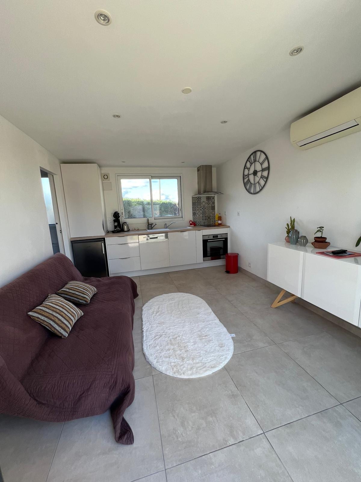 Mükəmməl qonaqlama üçün ideal yerdə yerləşən rahat mənzil! Səthin sahəsi: 46m2 – 4 nəfərə qədər qonaqlama 🛏️ Geniş yataq otağı (ikinəfərlik çarpayı + geniş saxlama) + qonaq otağında iki nəfərlik divan çarpayı 🍽️ Tam təchiz olunmuş mətbəx 🛁 Vanna vannası olan vanna otağı Netflix, Disney+, Prime ilə 📺 televizor (lazım olan hesaba giriş edin) 🛜 Wi-Fi ❄️ Bərpa olunan kondisioner Masa və yelləncəkli 🌿 örtülü terras 🚗 Xüsusi parkinq, nəzarət edilən və pulsuz Qatar stansiyasına piyada 📍 10 dəq, supermarketə 2 dəq