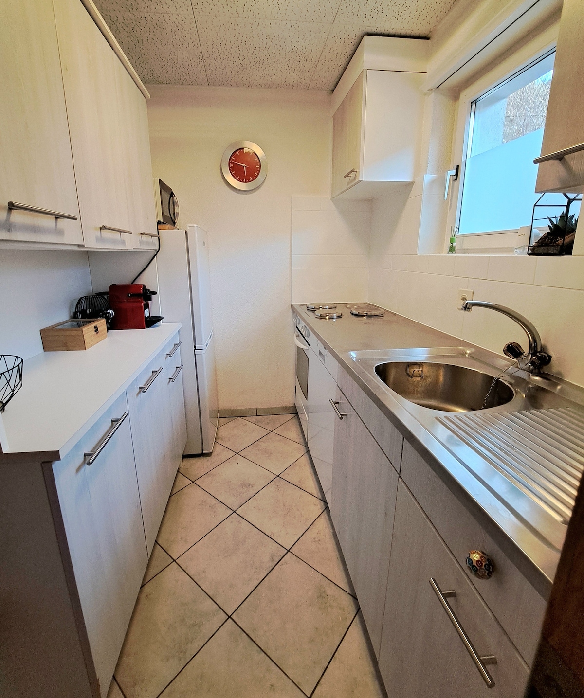 Sakit yaşayış yerində rahat, müasir studiyamızda yaddaqalan qonaqlamadan zövq alın. Xüsusiyyətlərə iki birnəfərlik çarpayı (90x200), yemək masası, 4K televizor, hoblu balaca mətbəx, soba, mikrodalğalı soba, qabyuyan maşın, soyuducu/dondurucu, qəhvə maşını, toster, çaydan, paltaryuyan kombayn və tozsoran daxildir. Duş, tualet və hövzəsi olan vanna otağı. Evin qarşısında pulsuz yüksək sürətli Wi-Fi və ayrıca parkinq yeri.