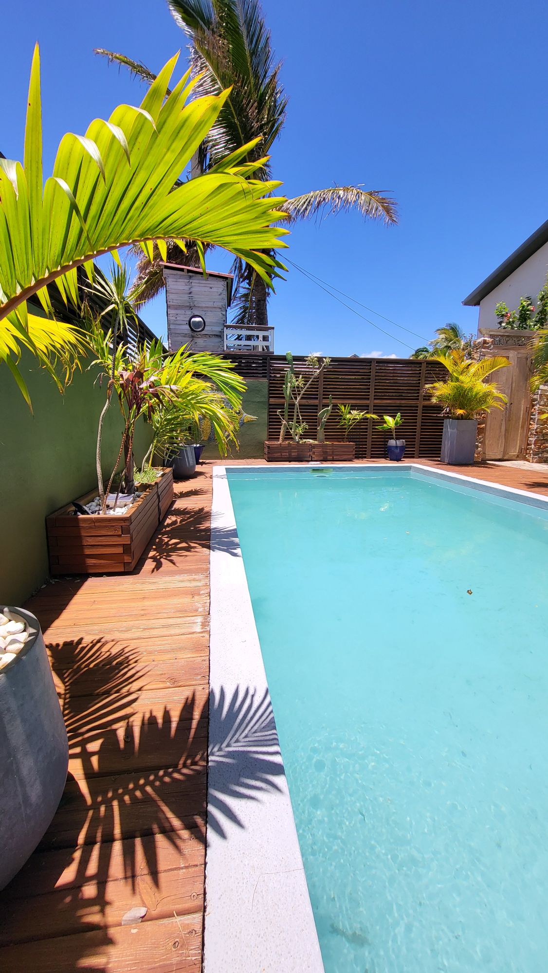 Vous profiterez d'une suite de 30m2 avec salle de bain privée + WC + kitchenette au sein de notre Villa d'exception. Appt privé avec accès privé, accès par le jardin. Vous profiterez également de la grande piscine partagée, du spa, hammam, sauna a disposition toute l'année. Accès aux espaces communs de la villa : Cuisine intérieure toute équipée, cuisine extérieure et barbecue, etc..... Situé à 10mn du lagon de St Pierre, proche de tous les commerces accessibles à pied.