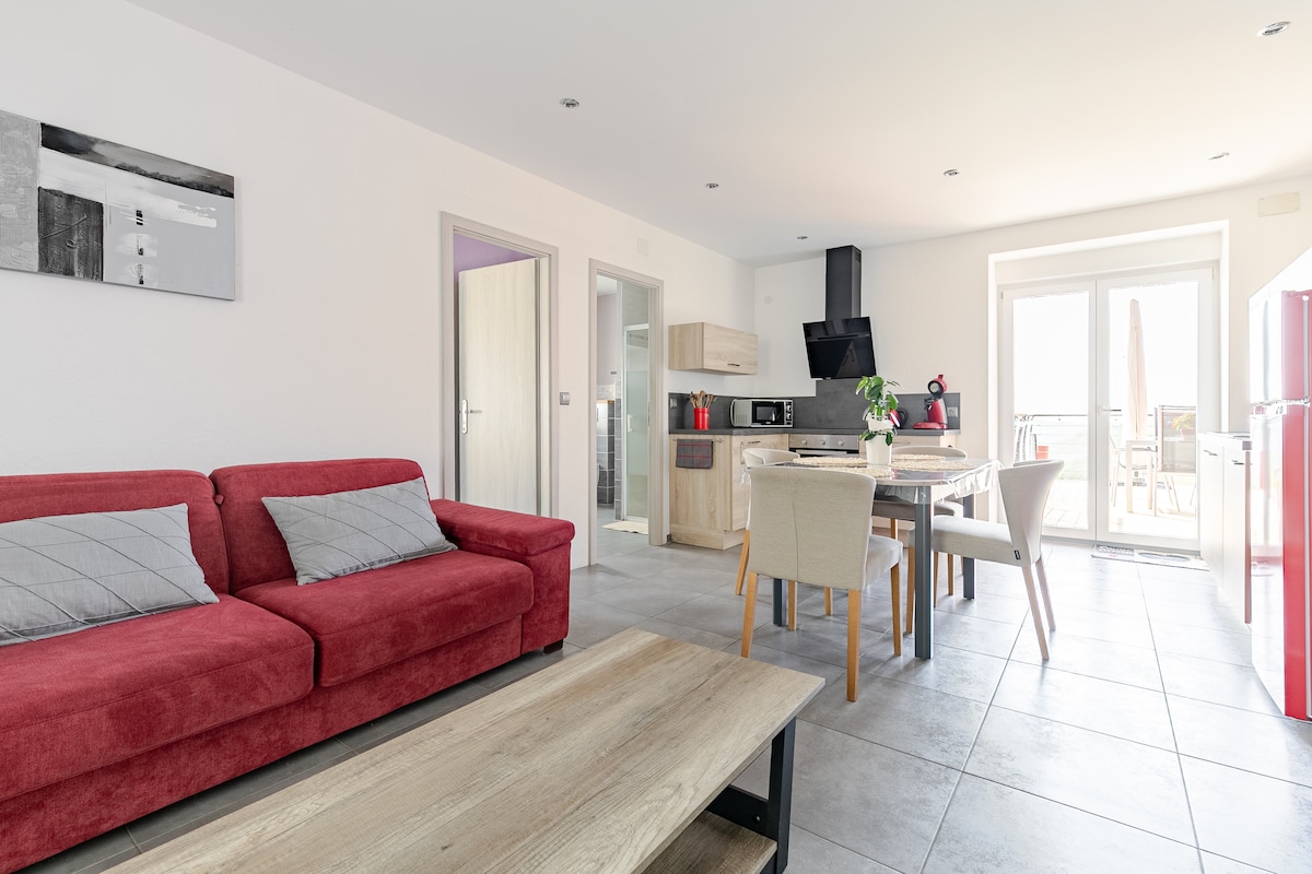 Tam təmirli mənzil, kiçik bir evdə. İnteqrasiya edilmiş mətbəx, hamam otağı, yataq otağında ikinəfərlik çarpayı və ikinəfərlik divan-çarpayı, istəyə uyğun olaraq qatlanan çarpayı əlavə etmək mümkündür. Böyük meşə massivinin ortasında, Dabo qayasına heyran ola və onu ziyarət edə biləcəyiniz kiçik bir kəndin sakit küçəsində yerləşən ev. Yaxınlıqdakı bir neçə gəzinti cığırı.