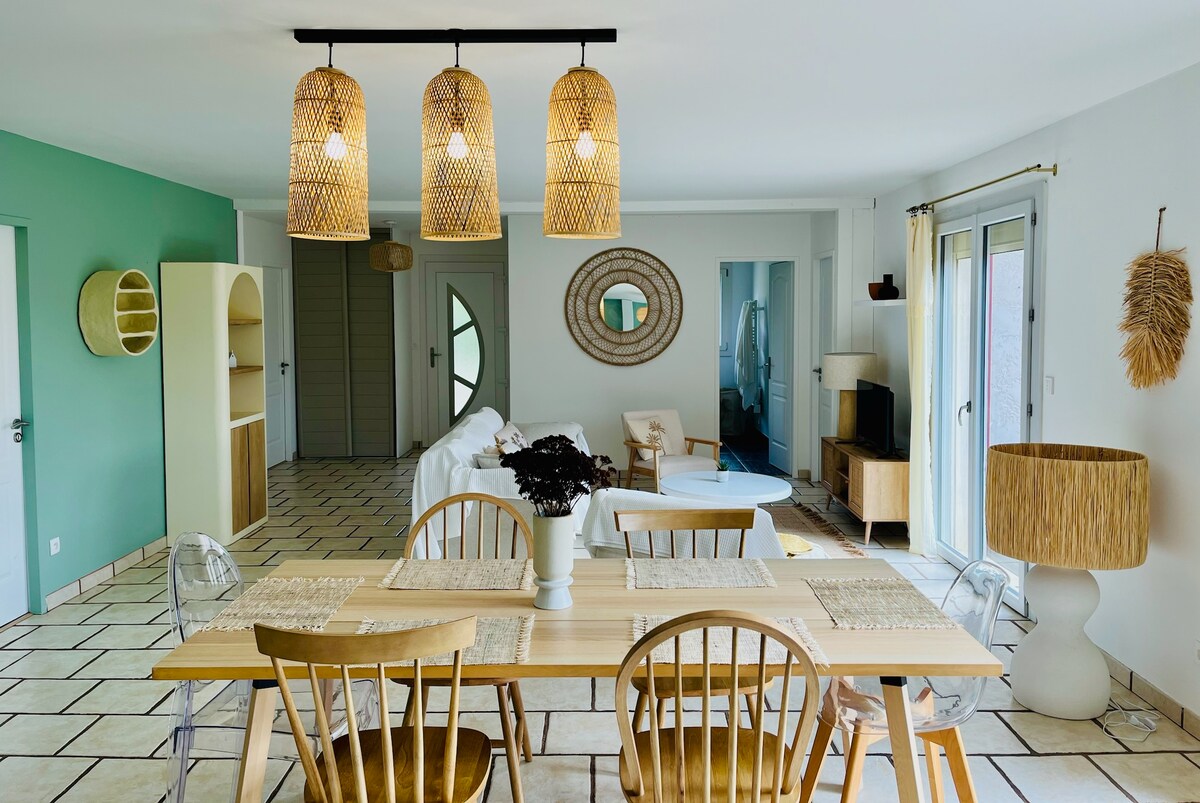 Corrèze şəhərinin mərkəzində, Sadrocda ideal şəkildə yerləşən☀️, işıqlı müasir 94 m² sahəsi olan En Haut du Paradis-i kəşf edin. İki geniş ölçülü yataq otağı🛏️, tam təchiz olunmuş mətbəx və möhtəşəm mənzərəli 5 nəfərlik ayrıca Spa ilə məxfilik şəraitində dincəlmək üçün mükəmməl bir yerdir. Yüksək səviyyəli komfortdan zövq alın: kondisioner❄️, xüsusi dizaynlı mebel, zərif hamam otağı və cazibədarlıq və xarakter əlavə edən daş divar.