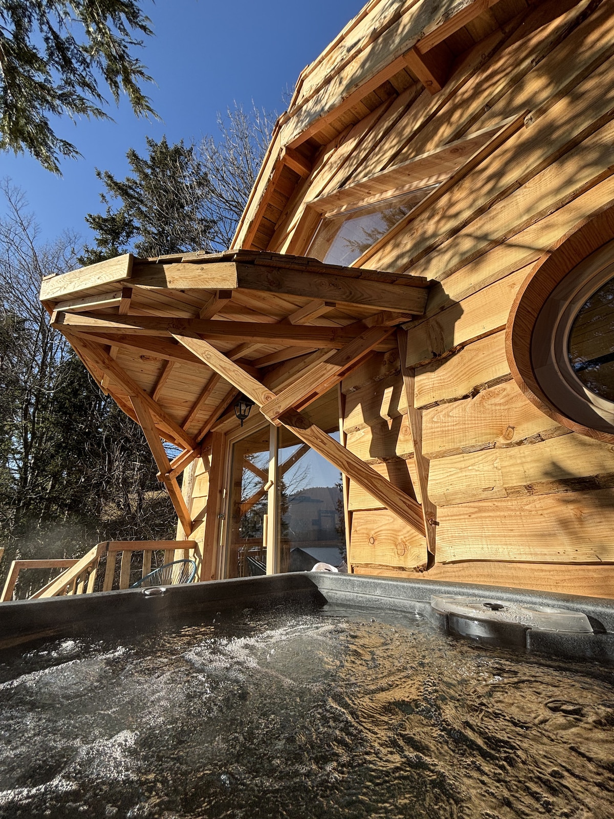 Le Delta bénéficie d'une cuisine aménagée ouverte sur un grand salon/salle à manger avec poêle à granules. Au rez-de-chaussée se trouve également une première chambre avec lit double, une salle de bain, un WC séparé et une buanderie. A l'étage se trouve la chambre mezzanine avec baignoire et lit double. Profitez du filet pour vous détendre et accéder aux 2 couchages insolites. L'accès au chalet se fait par une terrasse de 35m² avec SPA privatif et mobilier d'extérieur.