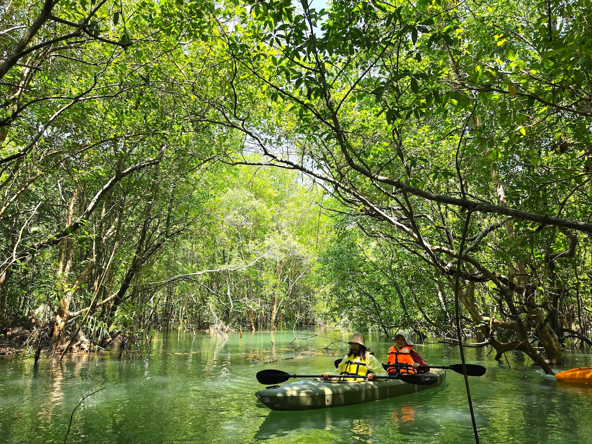 Yeni açılan Müasir Manqrov Loç | Kayak və Təbiət May-Kao yaxınlığındakı Ta-Mapraoda yerləşən 2 mərtəbəli istirahət mərkəzimizə qaçın. Bu açıq konsepsiyalı ev Puketin manqrov meşələrinin vəhşi gözəlliyi ilə birləşir. • 🛶 Araşdırın: Gizli manqrov palçıq yollarına xüsusi giriş və pulsuz kayaklar. * Qabarma-çəkilmə zamanı 3 saat müddətinə pulsuz kayaklar təqdim olunur • 🧘🏻♀️ Rahatlayın: bağ mənzərəli vanna və böyük eyvan. • 🛏️ Məkan: 1 böyük çarpayı (1-ci mərtəbə), 2 əkiz çarpayı (2-ci mərtəbə) və divan-çarpayı.