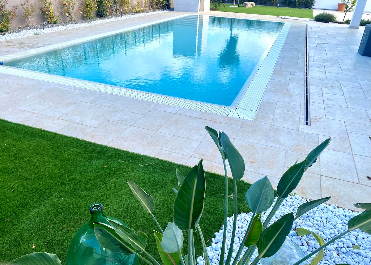 Üzgüçülük hovuzu olan 3 konusdan ibarət Trullo