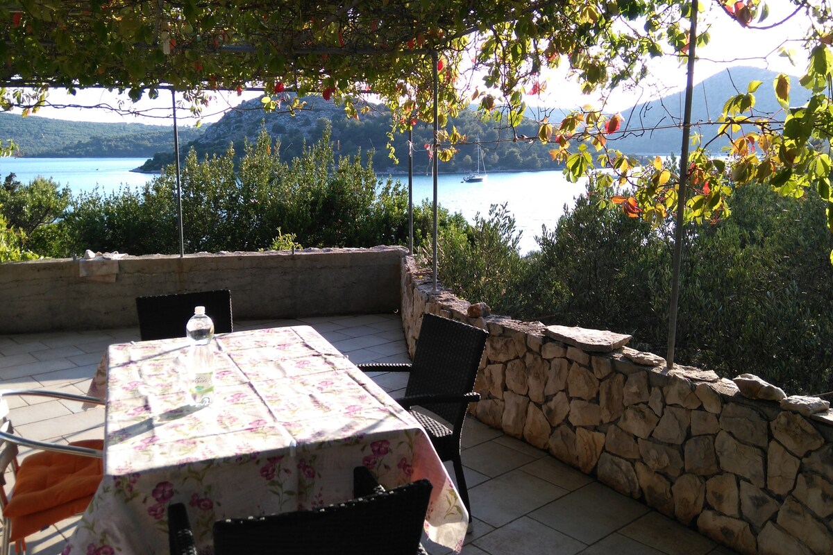 This charming traditional Dalmatian house is in Ždrelac on Pašman, surrounded by pine trees and overlooking the harbor and village center. Built by our family 80 years ago and lovingly renovated, the house preserves its original character and island spirit. Wake up to a sea view, relax on the terrace, enjoy the private garden, and explore the peaceful nature of Pašman and Ugljan, especially outside the season. Stroll to nearby beaches, local restaurants, and enjoy a true island escape.