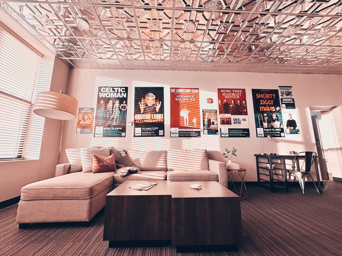 Bu möhtəşəm, yeni təmir edilmiş mənzil Salinanın mərkəzində tarixi Stattedel Teatrının bir hissəsidir. Bu gözəl mənzilin Santa-Fe üzərində görünən böyük pəncərələri var. Şəhərin düz mərkəzindəsiniz, bütün restoranlar, mağazalar cəmi bir neçə dəqiqə uzaqlıqdadır. Loftda iki nəfərlik yataq otağı və qonaq otağında iki nəfər yatan Vest Elmli divan var. Santa-Fedən xüsusi giriş, mikrodalğalı soba, espresso və qəhvə maşını, paltaryuyan maşın və paltarqurudan maşın olan tam mətbəx var.