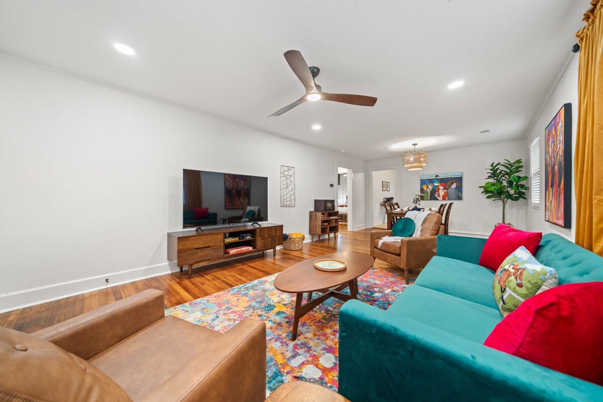 Welcome to The JEWEL!! Located just 433 ft from Oaklawn Racing & Casino - this Fun & Vibrant Vacation Rental features Open Living & Dining Space, a Fully Stocked Kitchen, 2 King Ensuites with Custom Tile Showers, a Covered Front Porch & Uncovered Back Patio! It is Perfect for Couples and Friends wanting to Experience the Heart of Hot Springs!! Walk to Dinner and Enjoy a Beautiful Home away from Home after a Day out Exploring! Play Board Games, Stream a Movie, or Dance the Night Away!
