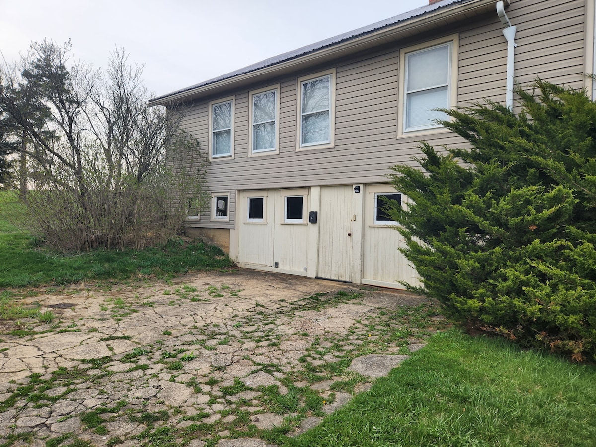 Relax with family, friends, or enjoy a solo retreat at this peaceful place to stay in the country. Chestnut House was built in the early 1940s, with Wormy Chestnut wood everywhere! It is a unique home, with an apartment built over a garage / wood working shop.. then connected to the main house later. This space available to rent is separate and fully functional from the main house where we live. Enjoy 2 bedrooms, 1 bathroom, full kitchen and living area.. along with the large outdoors!