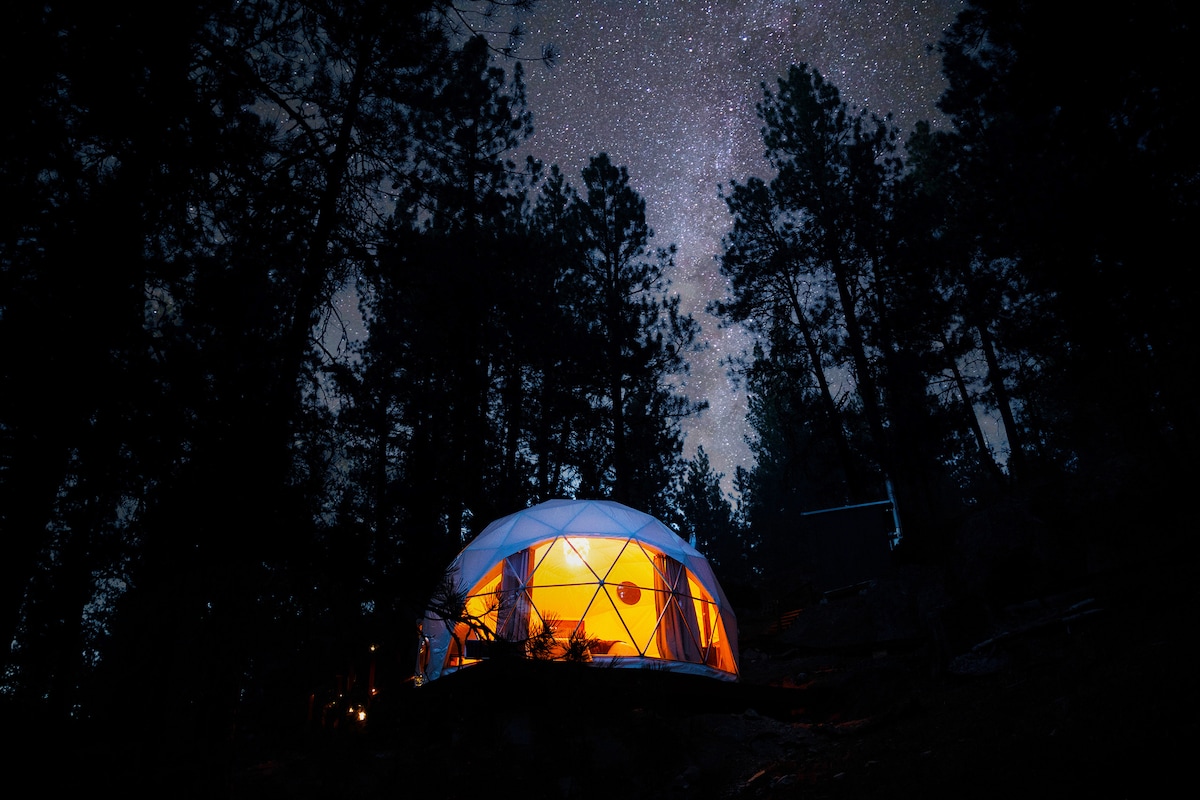 Kaskad Günbəzi: Yüksəldilmiş Geodome Camping w/ Sauna