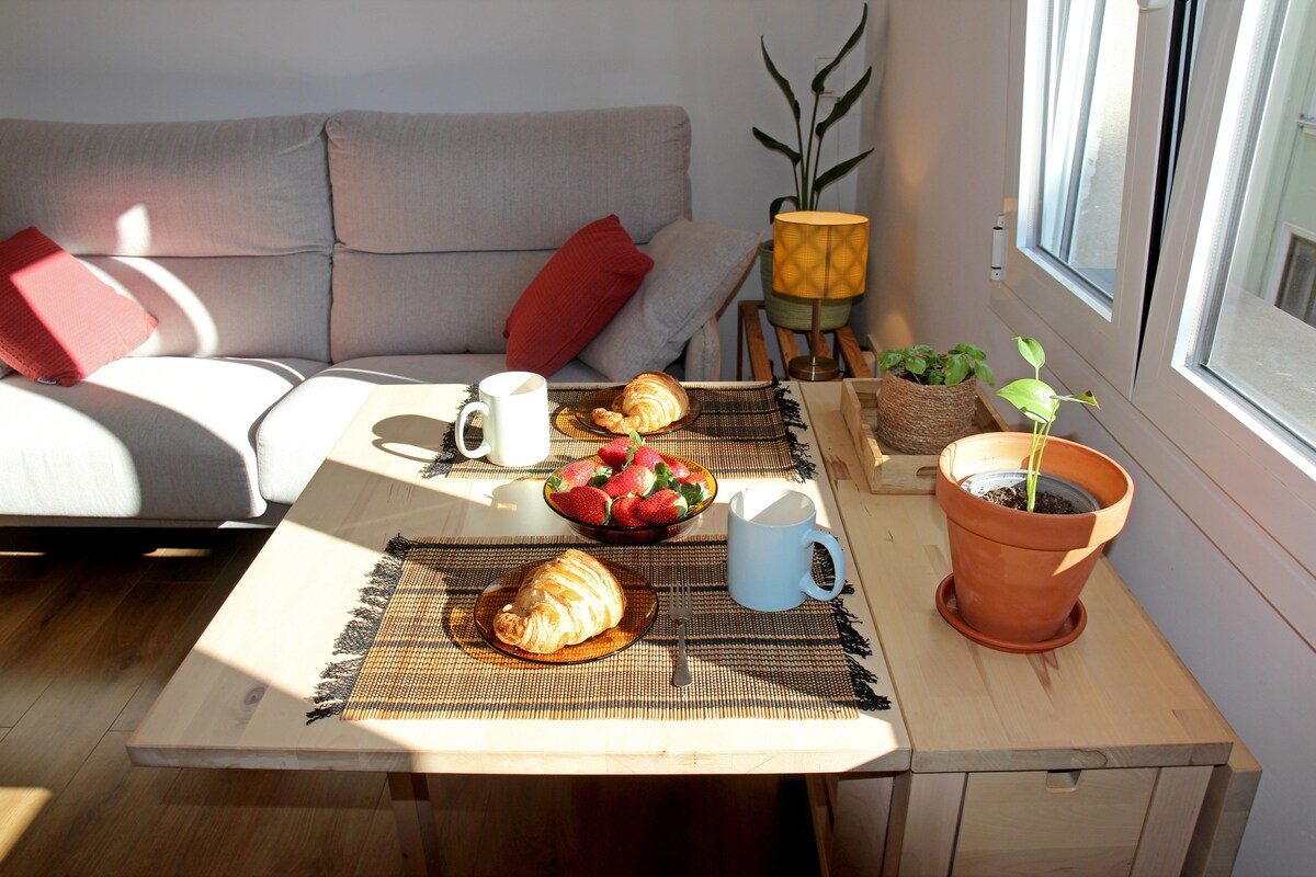 Studiya mənzili ayrıca hamam otağı və istirahət sahəsi, yaşayış sahəsi və balaca mətbəxin birləşdirildiyi bölmədən ibarətdir. Hər şey Tarraqonada bir neçə gün keçirmək istəyən cütlüklər və ya kiçik ailələr üçün nəzərdə tutulub. Mövqe çimərliyə piyada 5 dəqiqə qaldığımız üçün inanılmazdır, Rambla Nova (Tarraqonanın kommersiya arteriyası) üzərindəyik, Part Alta (köhnə şəhər) oteldən 400 metr məsafədə yerləşir, əgər hər hansı bir tədbirə gəlsələr, cəmi 200 metr məsafədə Konqres Sarayı və Yarmarkamız var. Bir sözlə, avtomobilinizi unutmaq və Tarraqonadan zövq almaq üçün hazırlanmış qonaqlama.