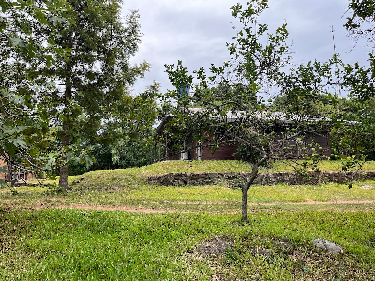 Casa quinta. Ideal para ir en familia. Cómo estar en el campo pero casi en la ciudad. Lejos del ruido del centro pero cerca de todo. Mucho espacio verde para descansar y relajarte. No precisas complicarte con nada, en la casa tenes todo: sábanas, toallas y vajilla. Cocina completa con todo lo necesario para cocinar y para comer en la casa. Barbacoa techada para hacer asados con la familia (no incluye leña). Se acepta 1 mascota. (1 sola) Ver costo adicional.