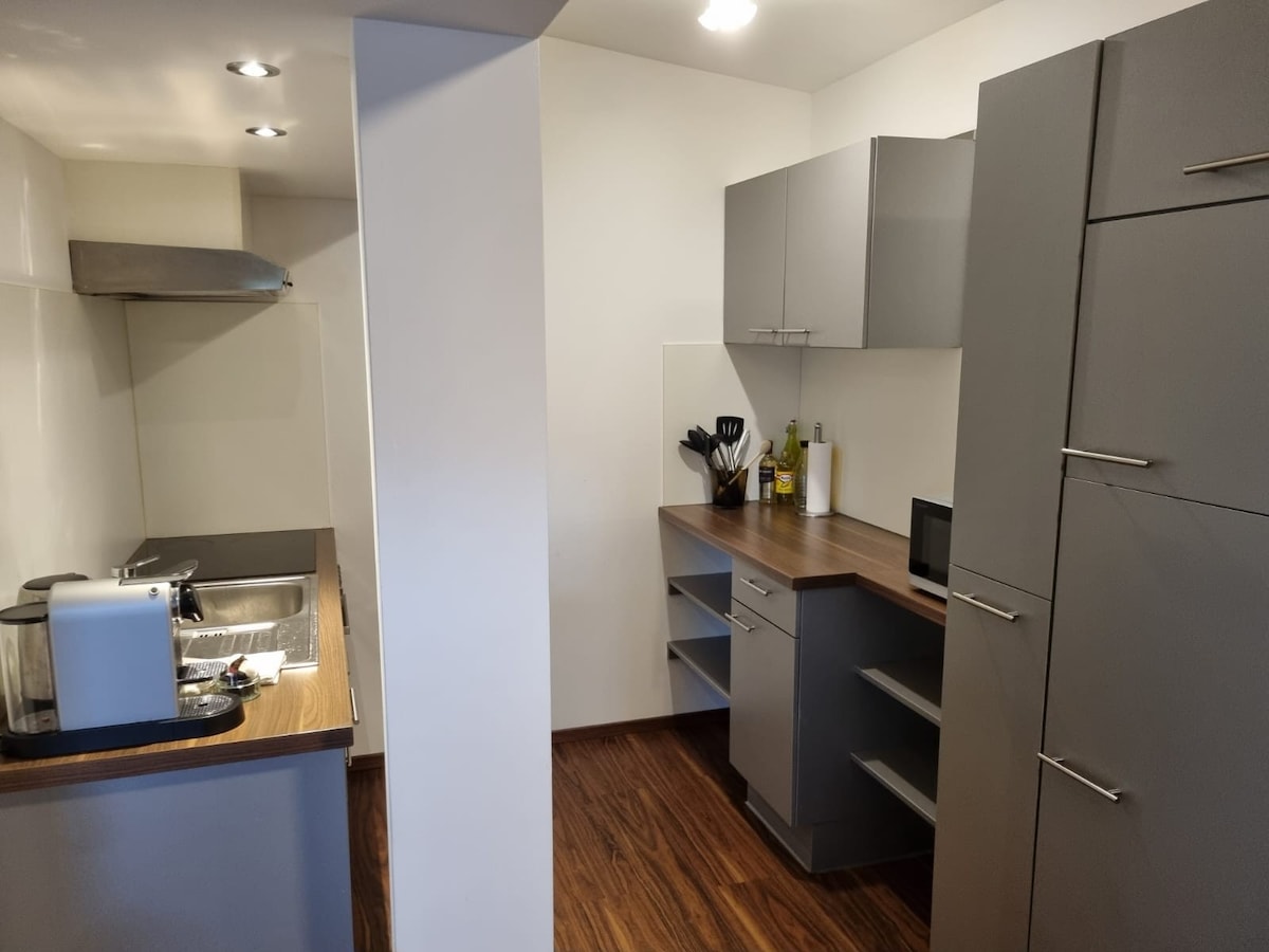 This apartment is located in the outskirts of Salzburg, with a direct bus connection to the city centre of Salzburg. From the two balconies you have a wonderful view to the mountains and you can see the sunset. A traditional restaurant and a bakery are just 500 m from here. The DesignerOutlet Centre and other shopping malls are just a few kilometres away and ideally reachable by bus. The apartment is perfectly suitable for business travellers, couples, musicians, families or single travellers.