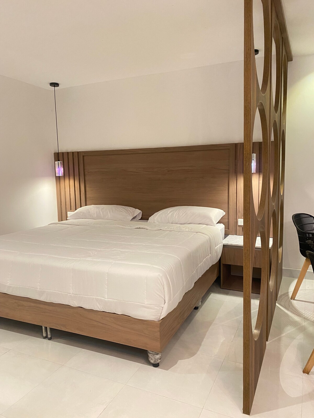 Bienvenido a tu santuario perfecto! Esta suite ha sido diseñada pensando en el confort, y la privacidad. Ideal para parejas, y/o viajes de negocios que buscan un refugio tranquilo y con todas las comodidades de un hogar. Contamos con una habitación con cama full, TV (Netflix) aire acondicionado Baño completo /agua caliente. Sala, comedor grande con AACC Cocina con completa. Área de trabajo con WIFI de alta velocidad, check in remoto para facilitar el ingreso; Parqueo y seguridad 24/7