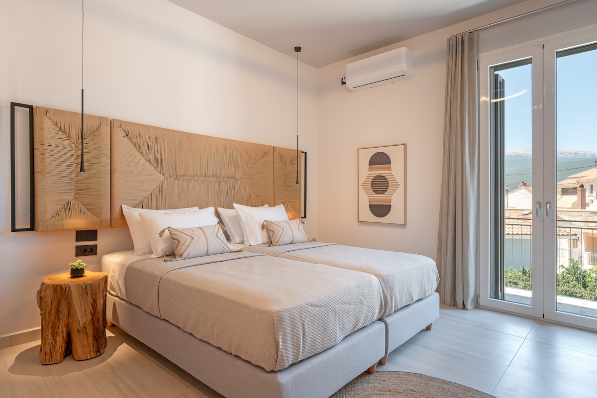 Welcome to Angelina, a chic and cozy rooftop apartment nestled in the heart of Sami, just a stone's throw away from the sparkling sea. With its prime location it serves as the perfect launching point for exploring the entire island, and offers the quickest connection to the nearby island of Ithaca. And after a day of adventure, unwind on the spacious private terrace and savor the fresh mountain and sea breezes.