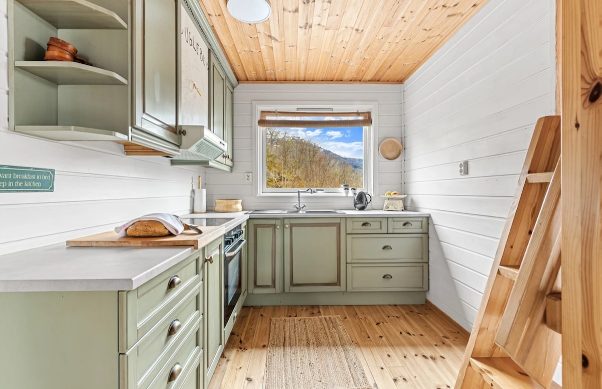 Kiçik bir zirvədə sevimli, gözəl kiçik bir ev. Həm fyord, həm göl, həm də dağlara gözəl mənzərələr açılır. Burada səssizlikdən və sığınacaq mühitində pozulmaz mənzərədən zövq ala bilərsiniz. Bu unikal ev 2019-cu ildə TV2-də "Ev üçün vaxt" teleserial proqramında da var idi. Orada mətbəxi və yemək otağını təzələyiblər. İstədiyiniz tarixlər mövcud deyilsə və ya daha uzunmüddətli qonaqlama istəyirsinizsə, bron etdiyiniz zaman mənimlə mesaj vasitəsilə əlaqə saxlaya bilərsiniz. Mövcudluğu uzada bilərəm.