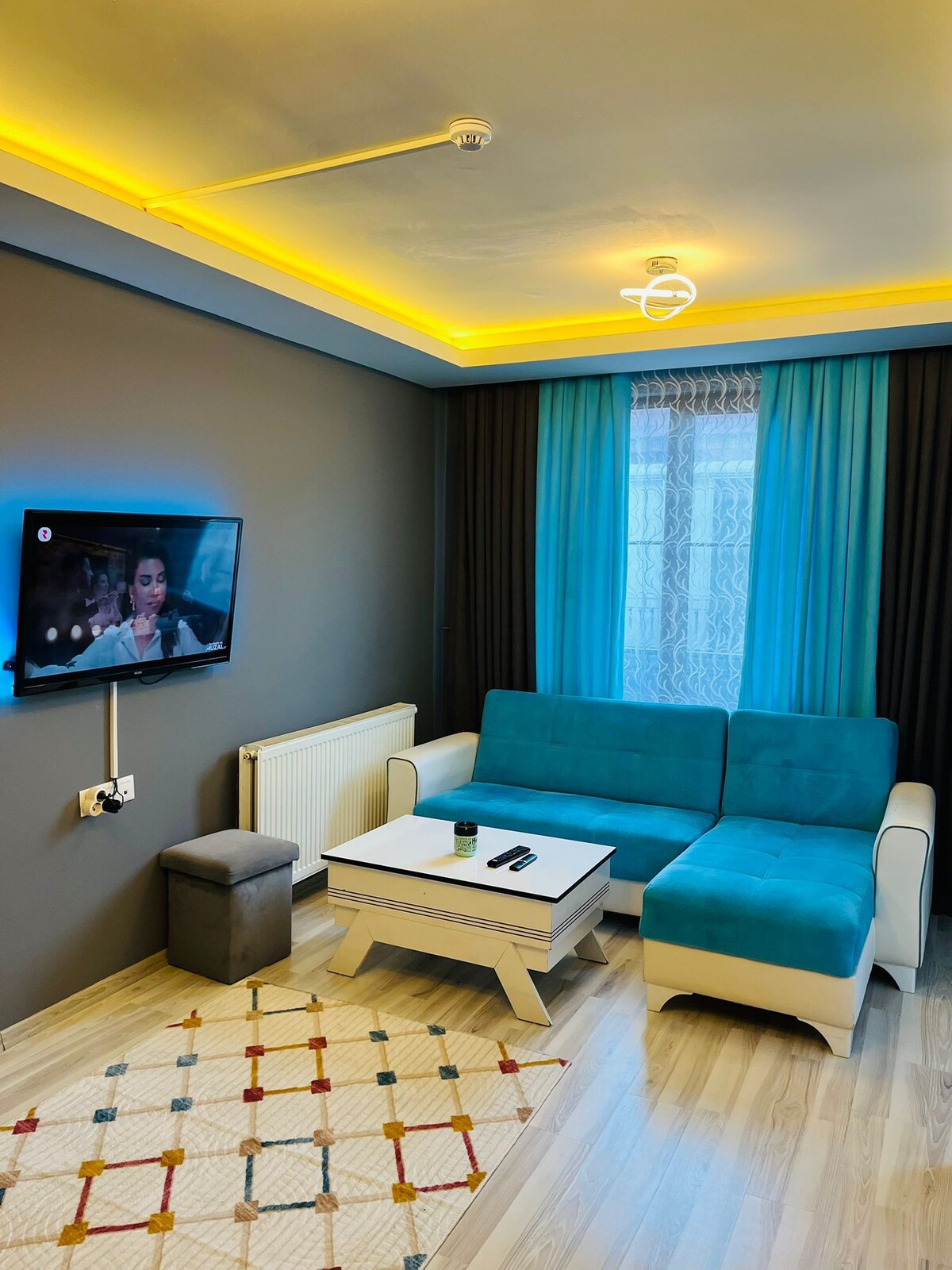 Samsun'un en nezih semtinde özenle döşenmiş evimiz sizlere temiz güvenli bir konaklama sunacaktir.Sahile aracla 2dk mesafede..Evde tv,buzdolabı,camaşir makınesı,elektrıklı ocak,cay kahve,tost makınesı ayrıca,cay kahve nescafe,sıvıyag,bulasık,camasır detarjanı temiz havlu,nevresim,şampuan ve duş jeli wc kağıdı ve genel temizlik malzemeleri bulunur,r25 m2lik balkonu dağ deniz ve şehir manzaralidir,Her msafir sonrası detaylı temizlik yapılır.Genş aile ve arkadaş gruplari için çok ıdealdır