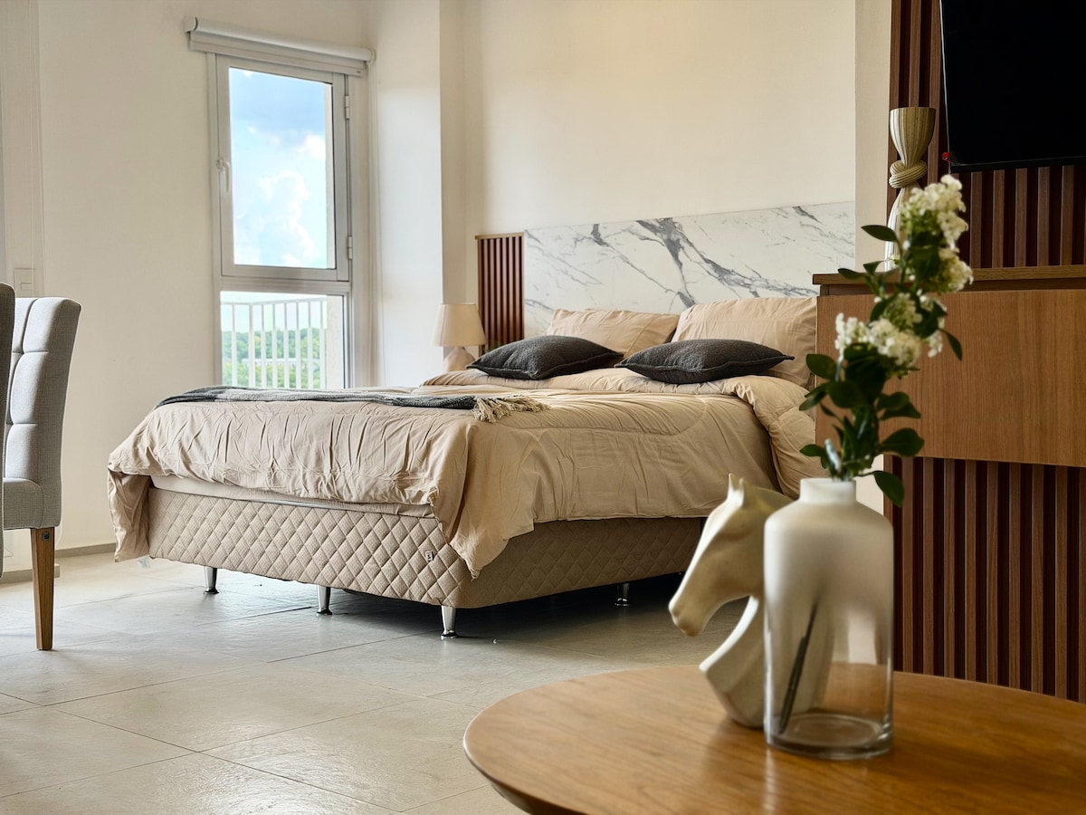 Disfruta de un alojamiento sencillo, tranquilo y con excelente ubicación céntrica. Desde el balcón podrás relajarte con una hermosa vista al bosque del centro, ideal para tomar un café o un tereré y compartir una buena charla. Un espacio cómodo y acogedor, perfecto para descansar y sentirte como en casa.