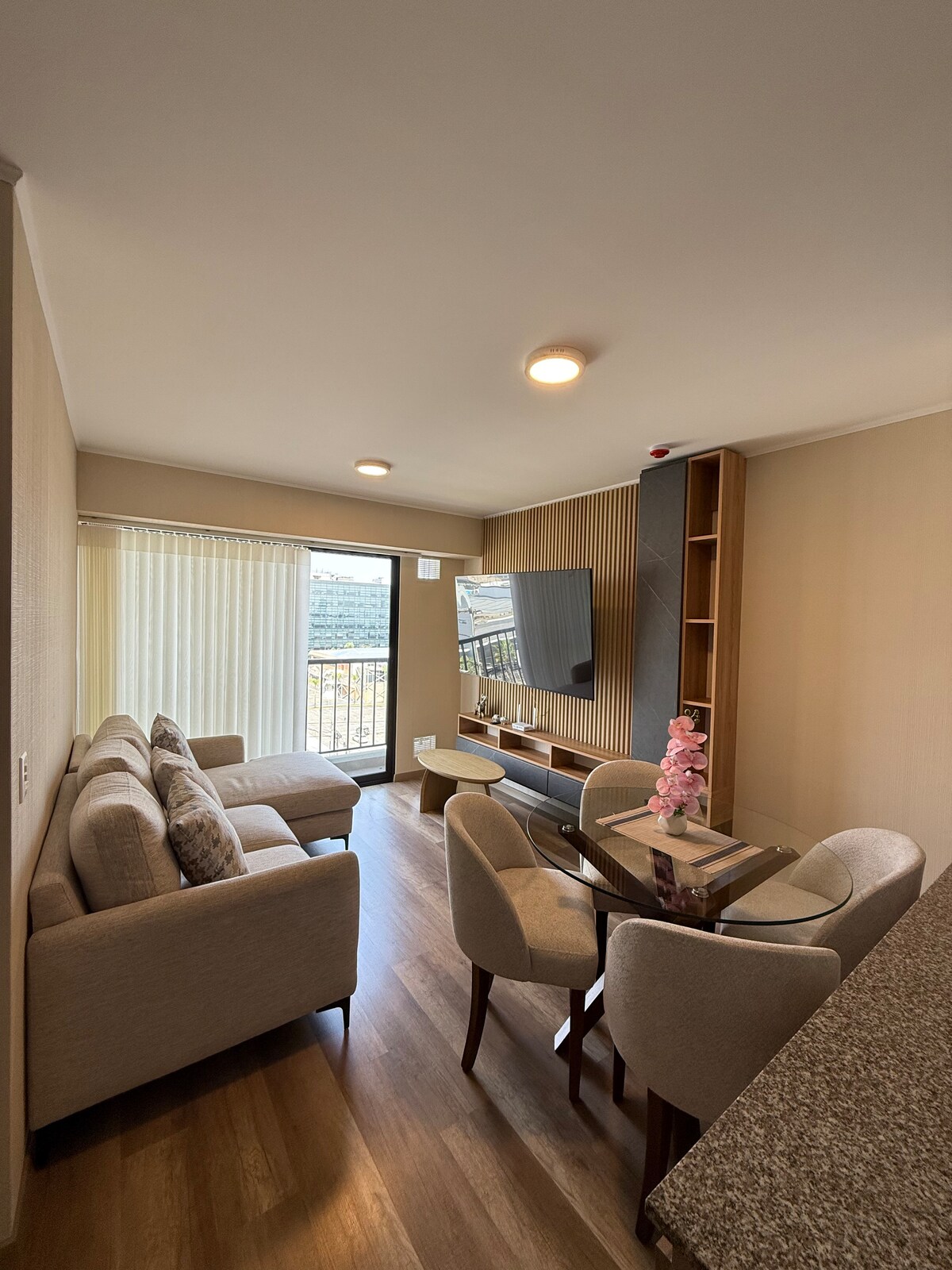 Ideal for long stays. The best stay for executives or couples. Located in the best business area of Lima, with everything at your grasp!. Within walking distance of banks, restaurants, cafes, shopping, entertainment centers, bus stops and more. Early check-in subject to availability. Enjoy a cozy, very illuminated apartment, with all the comforts to remote work and rest. In a modern building with 24-hour reception, gym, swimming pool in one of the most beautiful and safest areas of Lima - Perú.