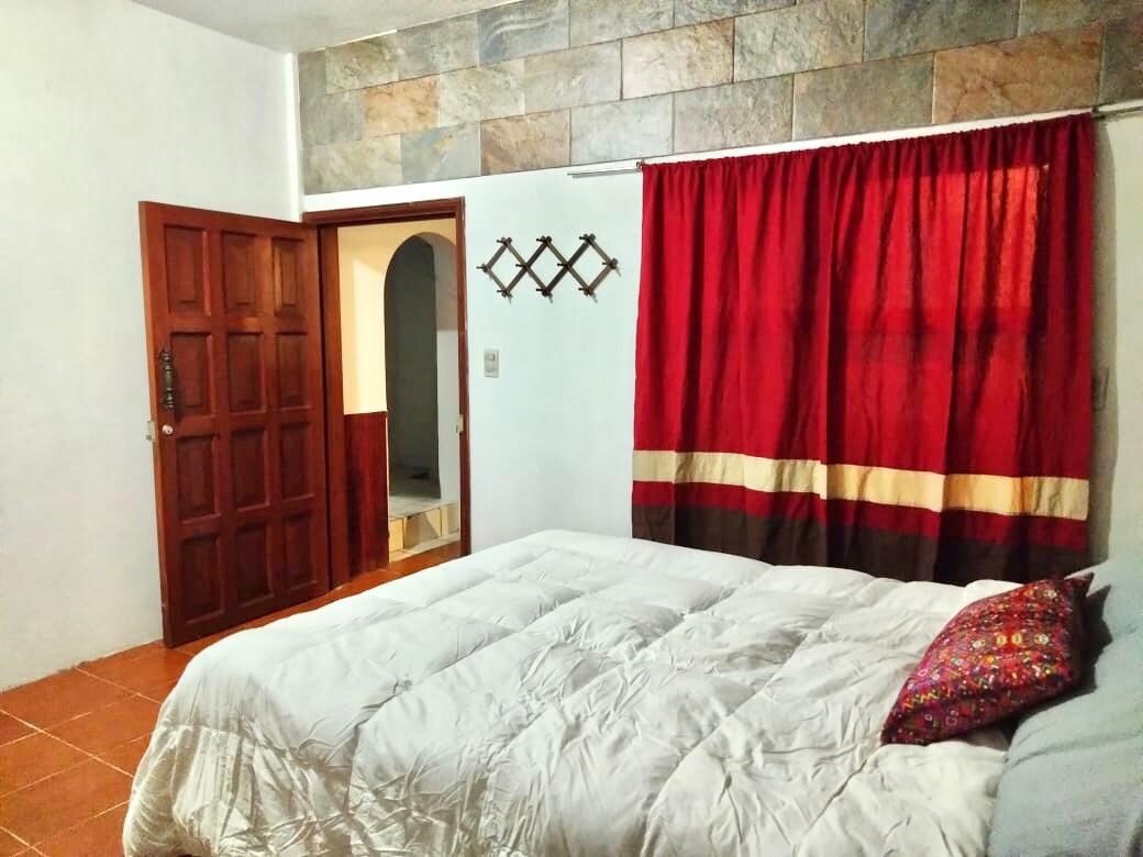 Disfruta de la sencillez de este alojamiento tranquilo y con una excelente ubicación. Perfecto para cuatro personas. consta de una habitación amplia con dos camas matrimonial, baño propio dentro de la habitación y acceso a cocina compartida, también wifi, TV, agua caliente en la regadera y sobre todo una ubicación excelente, a tan solo 15 minutos caminando al centro de la ciudad, y a una cuadra de plaza Chedraui, Cinépolis, farmacias, Coppel, teatro de la ciudad, etc.