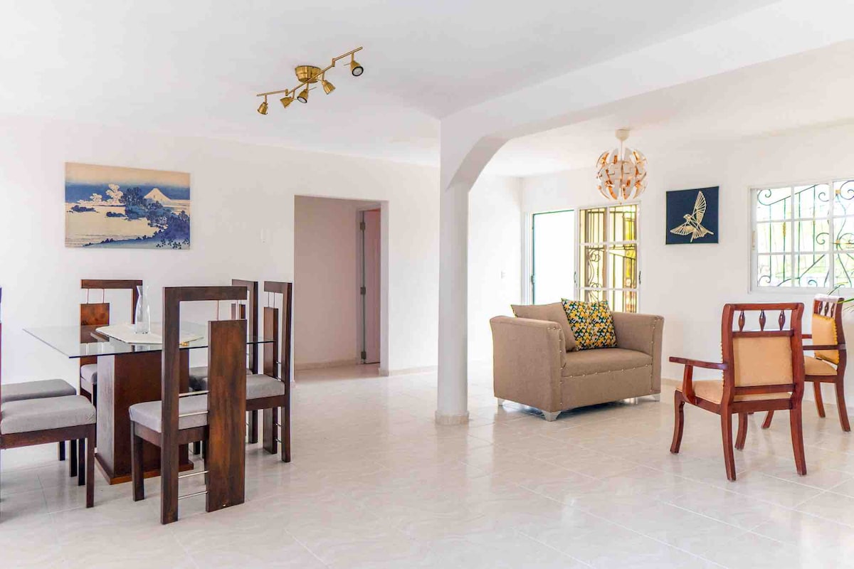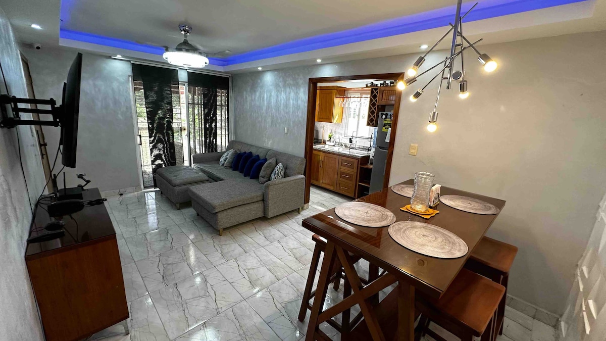 Diviértete con toda la familia en este alojamiento amueblado con estilo. Con sus dos amplias habitaciones cada una con aires acondicionados. SmartTV con todos las app de streaming (Netflix, HBO,...) incluidas, luz y internet 24/7, con parqueo incluido. Cerca de los supermercados y de la zonas céntricas de la ciudad.