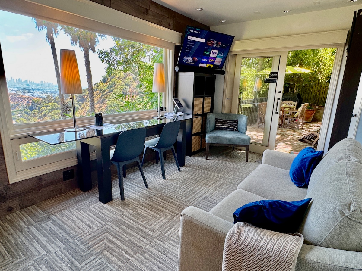 STUDİYANIN 1080 HOLLİVUD veb-saytının sıçrayış səhifəsində yeni VIDEO turumuza baxın. RƏYLƏRİMİZ HƏR ŞEYDƏN XƏBƏR VERİR.Hollywood Hills gəzintisi dəniz səviyyəsindən 1080 fut yüksəklikdə @ NƏFƏSKƏSİCİ MƏNZƏRƏLƏR. Sonos səslərini və avtomatlaşdırılmış çalarları sevəcəksiniz. Yeni Espresso Bar və asma qarderobdan zövq alın. Bu yüksək səviyyəli studiya espresso aparatı, mikrodalğalı soba, Sub-Zero soyuducusu, xüsusi HVAC və 55" 4K Smart TV ilə premium imkanlar təklif edir. Aleksa idarə olunan işıqlar/musiqi/qaralma çalarları. YENİLƏNMİŞ 2024 LADBS koduna uyğunluq Lisenziya # HSR24-002592