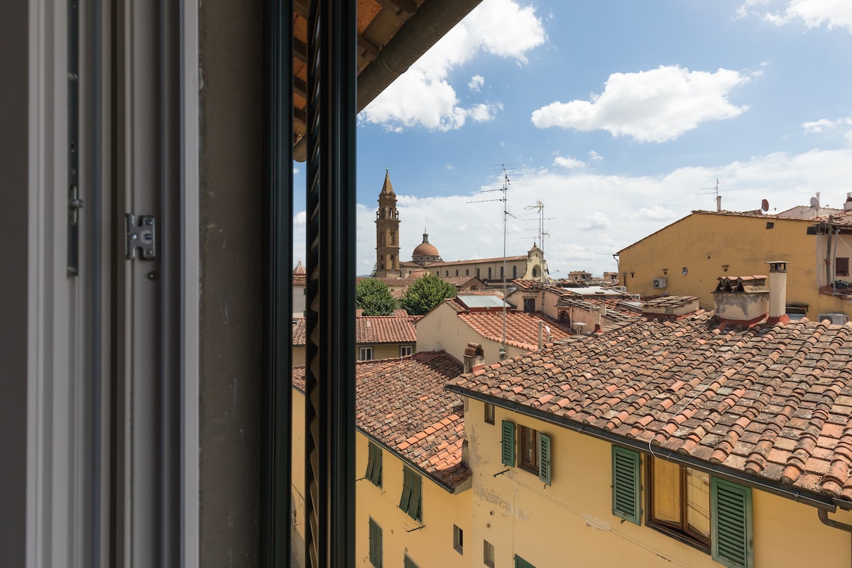 Florensiyanın gözəl mənzərələri olan Santa Kroçe Bazilikasının yanında loft xəyal edin.